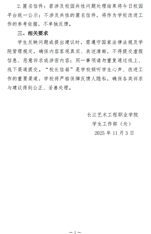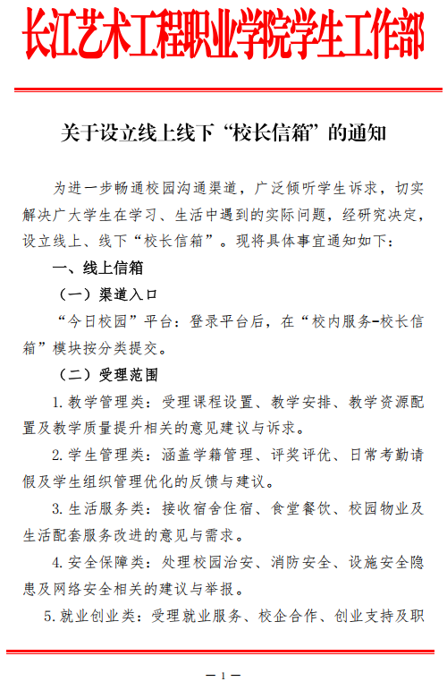 关于设立线上线下“校长信箱”的通知